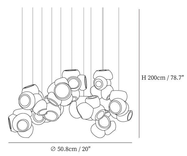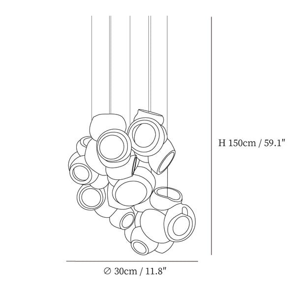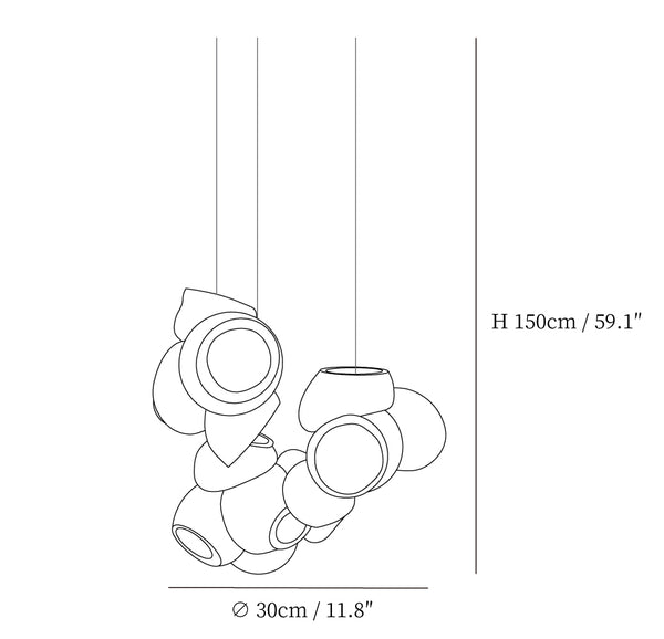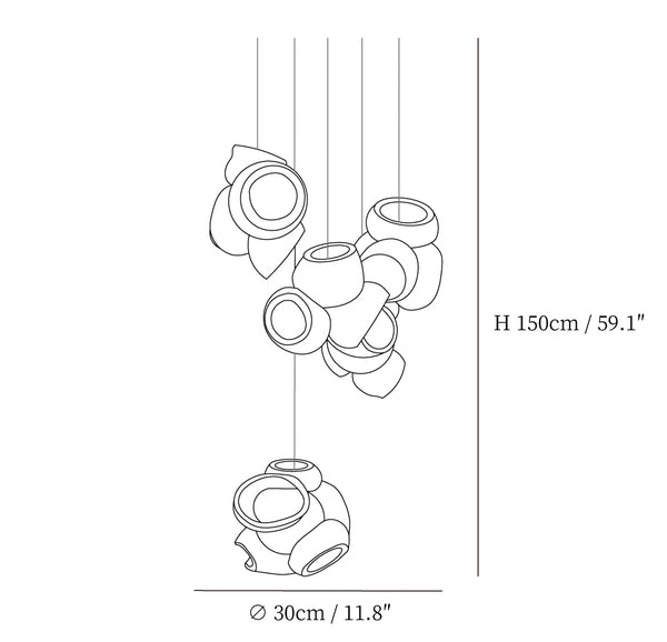 1Head Size: Dia 20cm x H 16.5cm / ∅ 7.9″ x H 6.5″. (59″ hanging wire.)