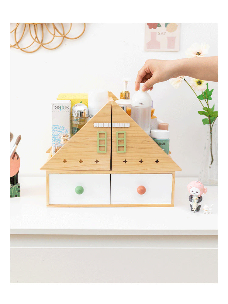 Add style and organization to your space with our versatile wooden storage box. Perfect for holding books, office supplies, or even as a decorative piece, this box doubles as bookends and a desk organizer. Makes a great gift for anyone looking to add a touch of charm to their room. Roof and drawers can be separated