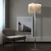This is a contemporary work of art it is a source of light, this on-trend chandelier makes a statement in any space. High-Quality Gold Electroplated Stainless Steel, Exquisite Craftsmanship, Energy Efficient LED Light Source. Hundreds of aluminum chains are suspended asymmetrically from a linear shape frame, casting a refractive glow to dramatic effect. The process of the tassel chain presents the perfect combination of handcraft and design. It can stand out in many lighting styles. Out of a classic, vintage industrial style and some modern flair evolved this stunning piece.