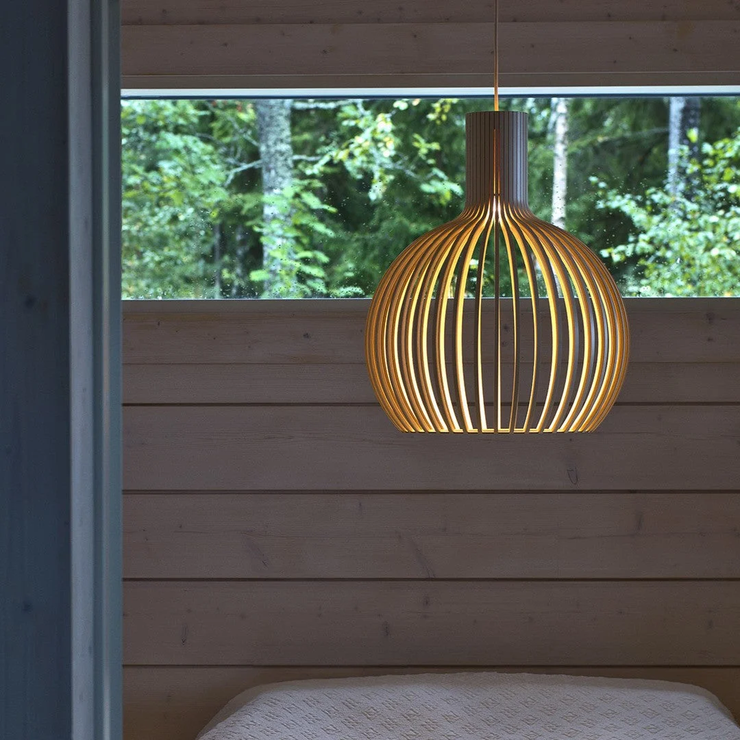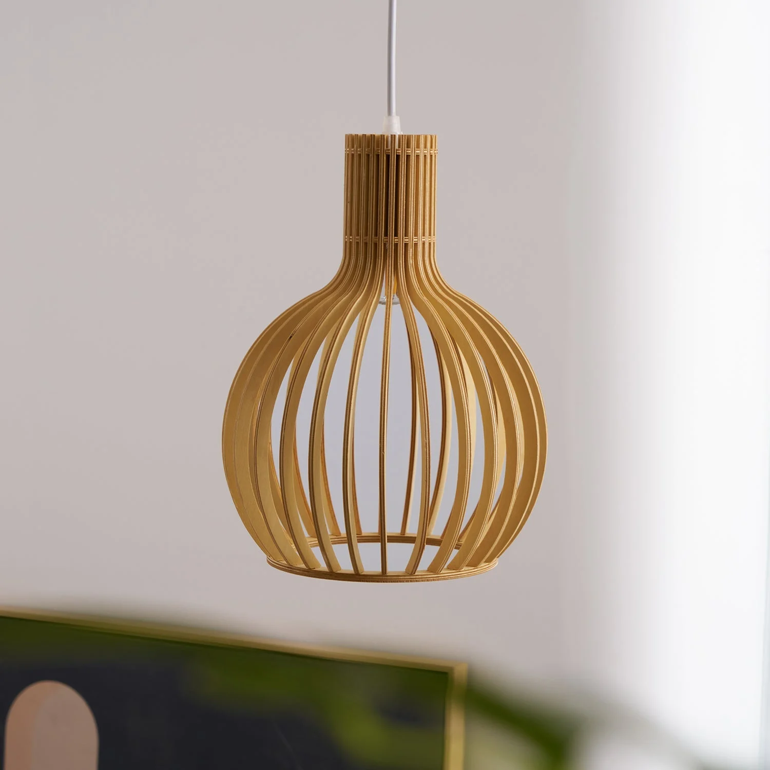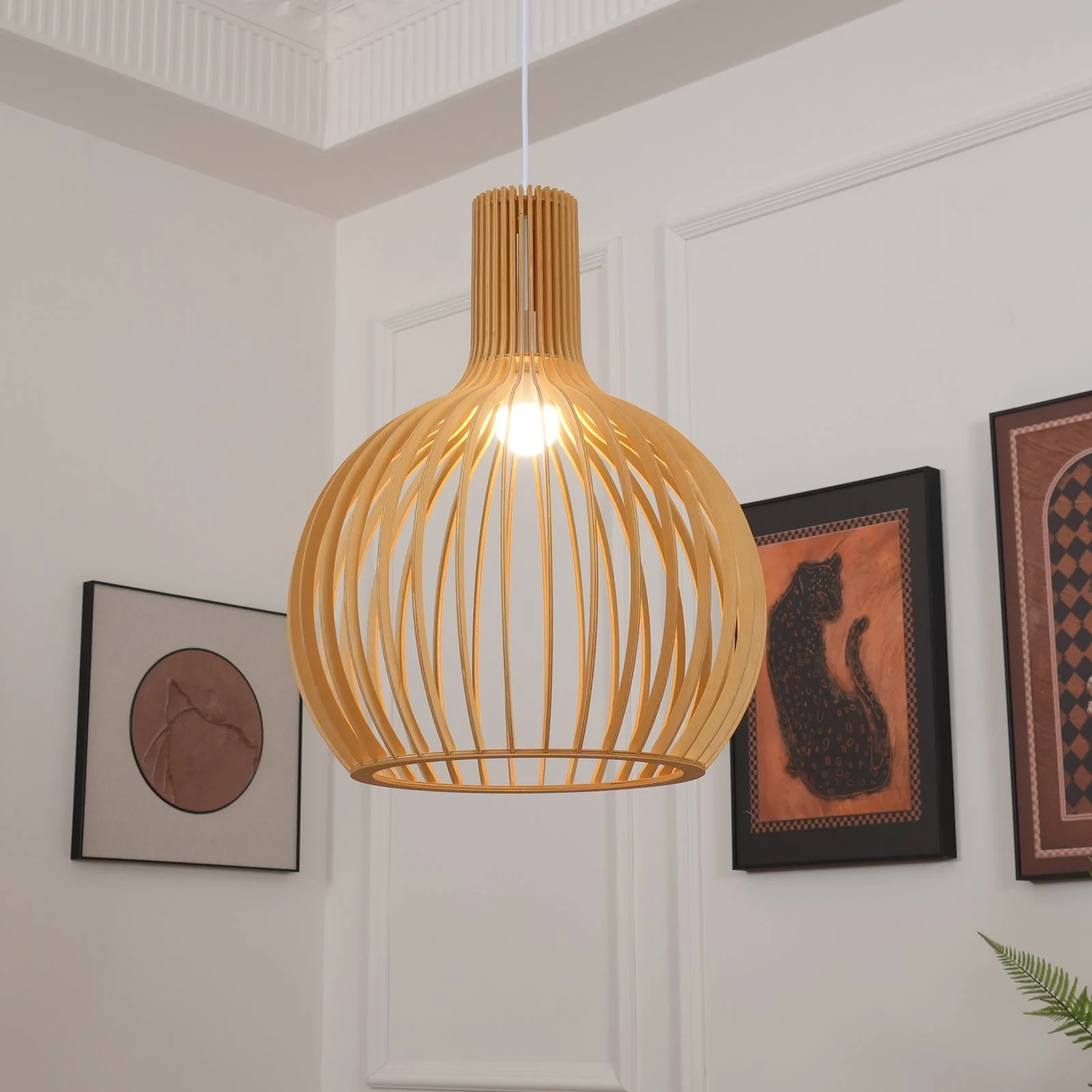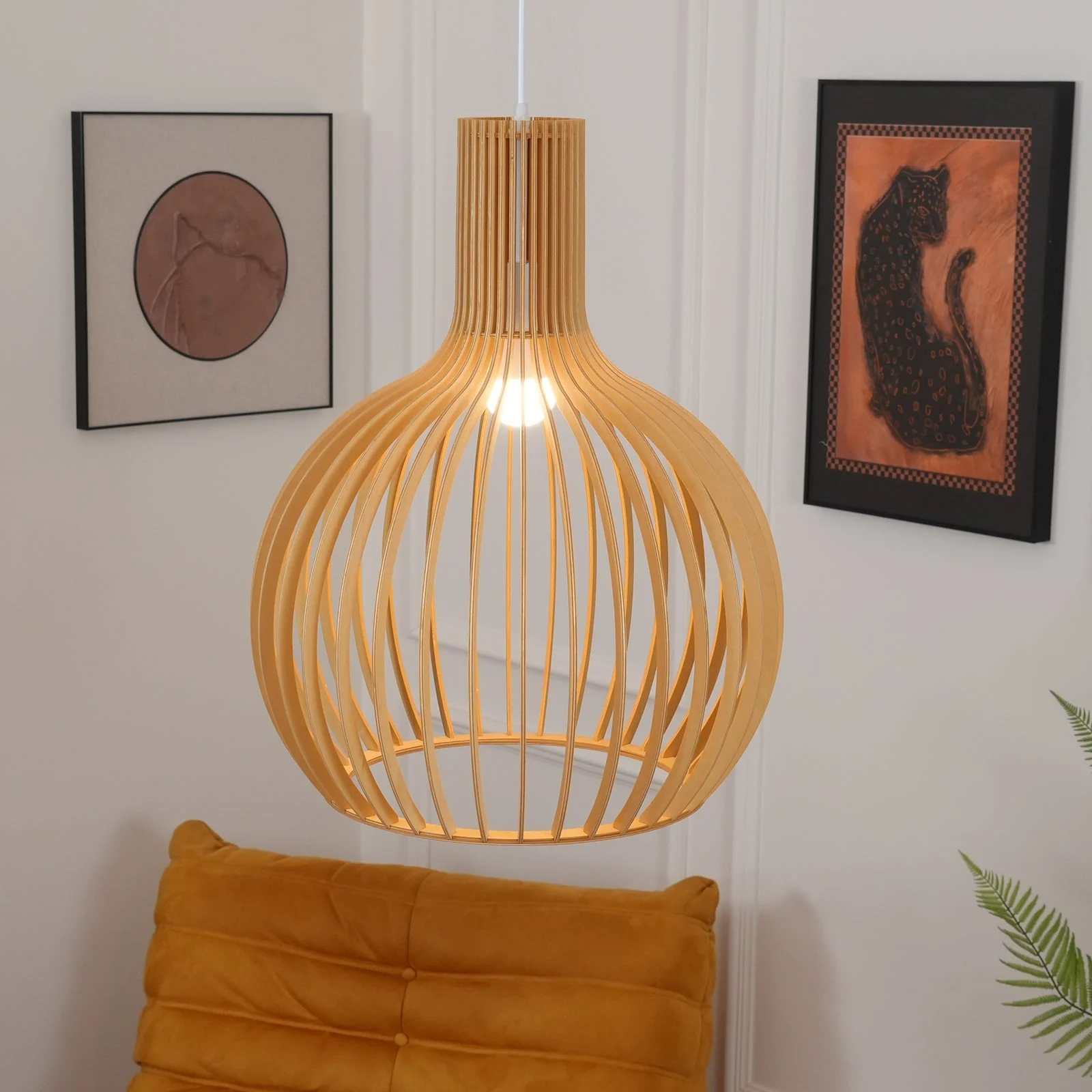 The Cage Pendant Lamp is a remarkable tribute to craftsmanship, designed by hand with form pressed birch to create a remarkable open shade. The soft illumination from the center of this pendant offers a restful, inviting atmosphere that brings warmth and style to your living room, dining room, entryway, or bedroom.