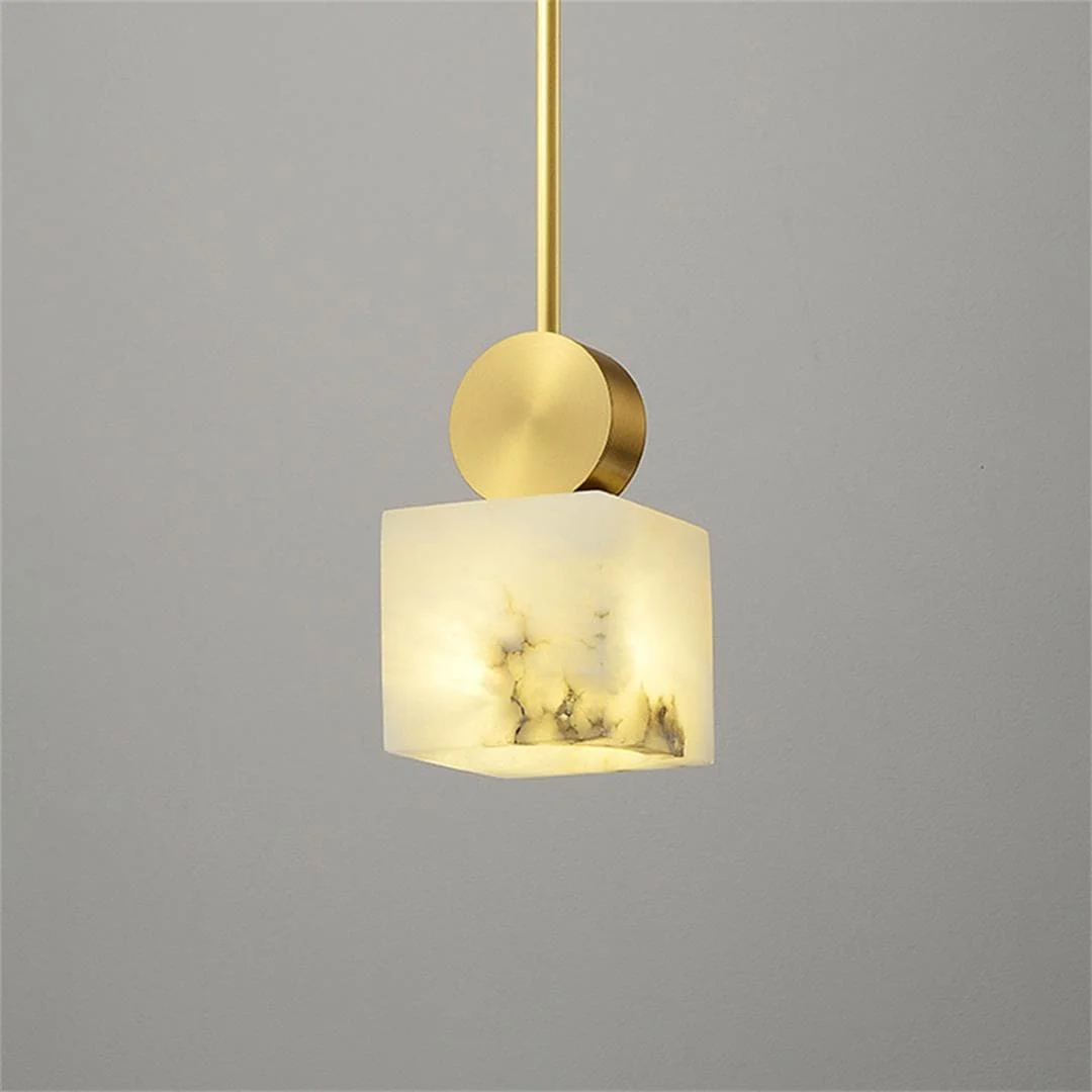 Cale Marble Pendant Light has a purely cylindrical shape, crafted from solid Italian fine-grained Carrara marble. The modern look fits the most decor, and they can hang alone or in a row above the dining table. A subtle, diffused glow appears around the lower section when lit.
