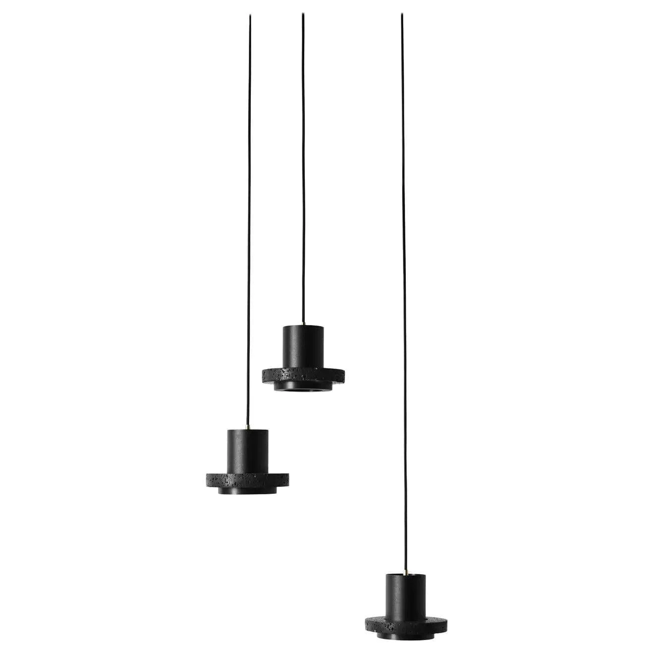 Calm Pendant Lamp derives its uniqueness from the simplicity of its forms and its materials.This material that is usually reserved for construction use, finds here a certain nobility. The patterns that are created by the grains of this material once it flowed and unmolded is what gives the creations