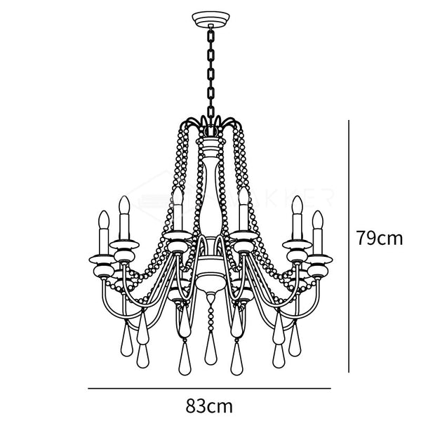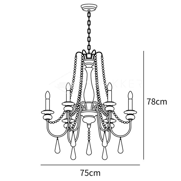 Dress up your home with this graceful wooden bead swag chandelier. Wooden bead strands swag and drape elegantly scrolling arms to give a timeless, elegant boost. Dangling teardrop ornaments echo the theme and draw the look together. Heavy metal in rust and distressed wood make a comfortable contrast. A coat of distressed white finish complements any home decor with a soft, feminine touch.