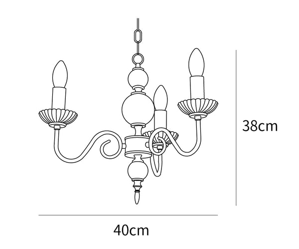 3 heads Size: ∅ 15.7″ x H 14.9″ / Dia 40cm x H 38cm