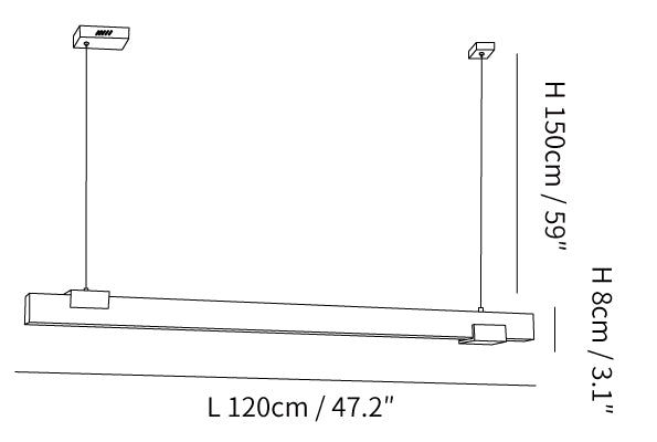59″ Adjustable hanging height cable. Can be extended upon request.