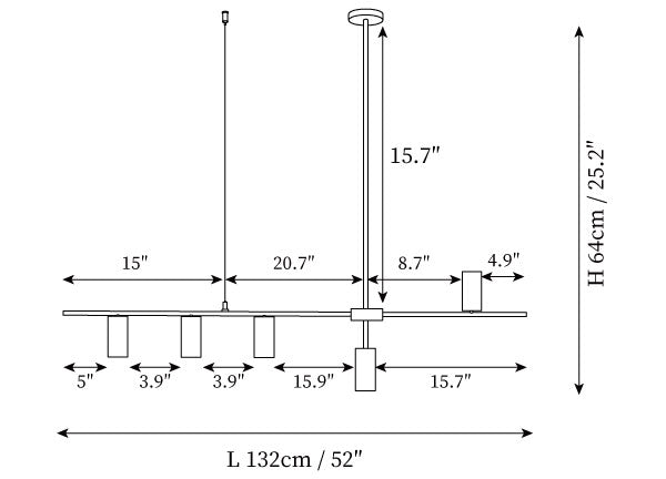 5-Lights Size: L 132cm x H 64cm / L 52″ x H 25.2