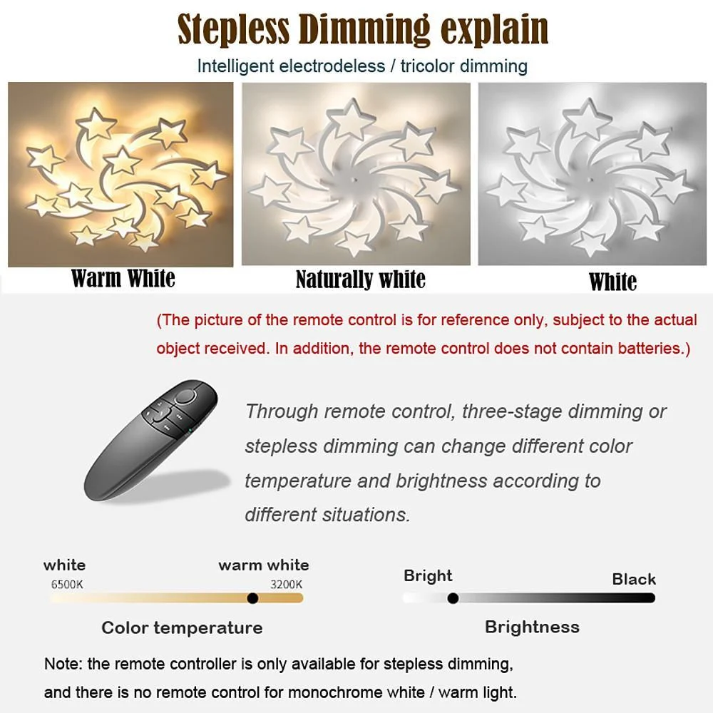 - This Shooting Stars Flush Mount Light features 3-step dimming to adjust color temperatures and a fully dimmable option with remote control.