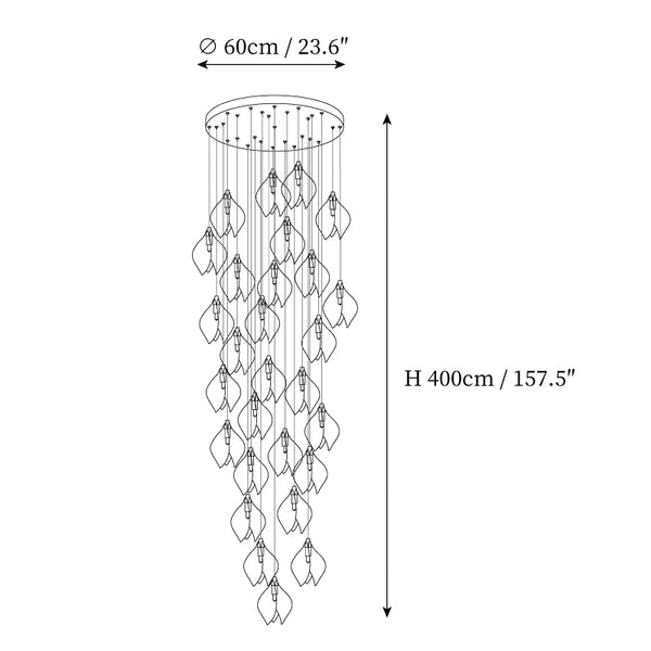 28 heads Size: Dia 60cm / ∅ 23.6″