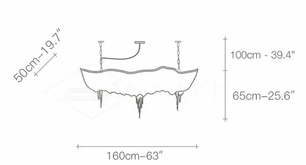 19.7″ hanging height hanging chain. Can be extended upon request.