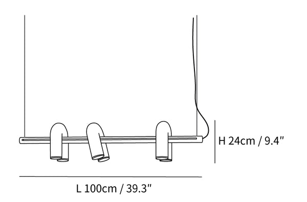 3 heads Size: L 100cm x H 24cm / L 39.3″ x H 9.4″ (Power: ~56W)