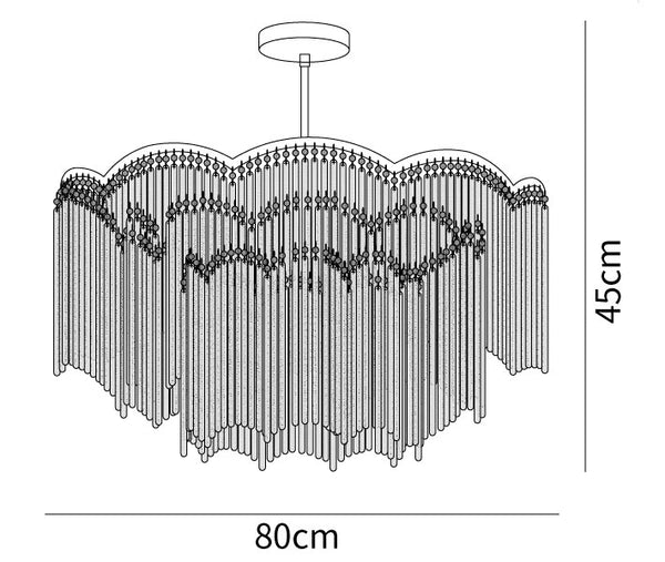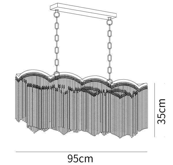 The pendant lamp uses a transparent glass rod pendant and an all-copper lamp stand to outline a minimalist wavy shape, which looks dreamy and romantic.