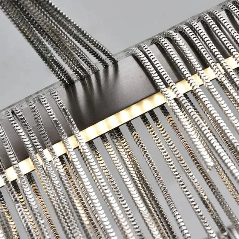 A linear raindrop chandelier offers a blend of elegance and modernity, making it a standout feature in any dining room. Its cascading droplets, often made aluminum, create a stunning visual effect that mimics the natural beauty of falling rain.