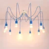 - This cluster spider chandelier consists of 10-heads elongated rounded rectangular ceiling mount hardware and a 10-light pendant lighting. You can DIY the numbers of cable and hanging lights for intensity of light at something you want to highlight. And it will give you an industrial retro style and modern home style based on the options we provide: black finish, white finish or colorful finish of light fixtures.