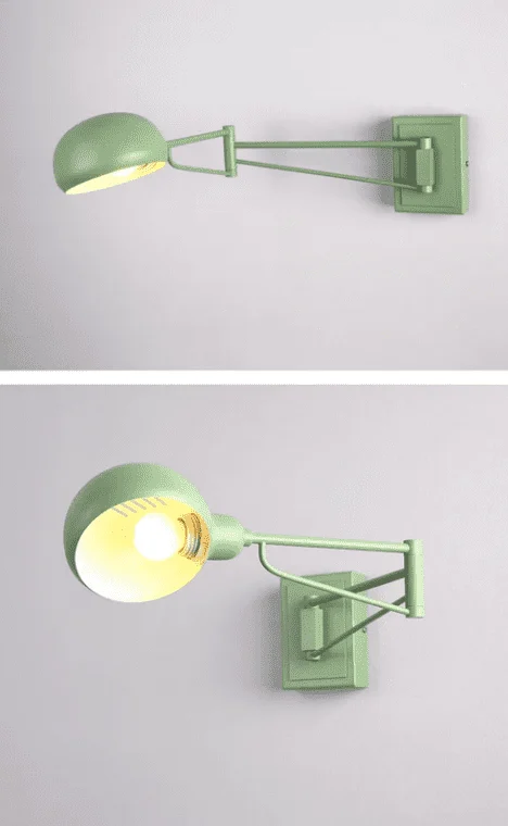 Turn heads with this colorful 360 degree LED wall light in painted iron. A movable arm allows you to direct the light above a reading nook or beside the bed. This versatile light fits into any décor and cozies up the master suite, guest room, or nursery.