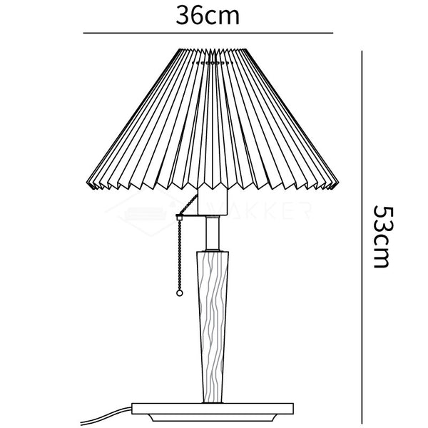 A Cone Pleated Fabric Table Lamp for Homelova. base made of solid wood and featuring a new white textured linen conical shade. The lamp body is decorated with golden brass.A very minimalist aesthetic.