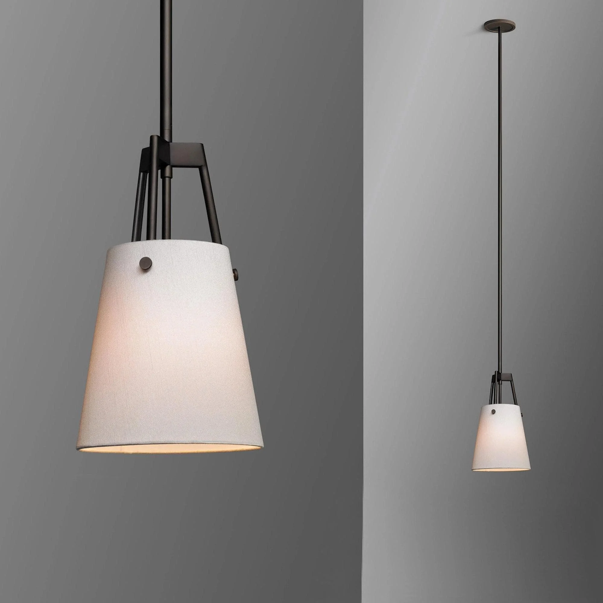 The Corniche Pendant is machined by hand from solid brass. All parts are hand polished and patina’d. The shade is made from Cloth.