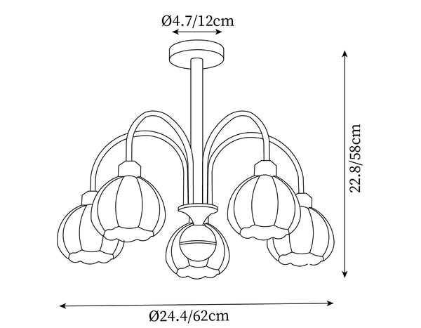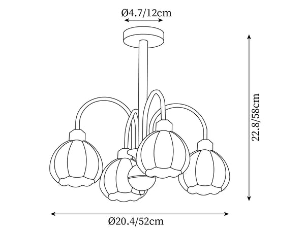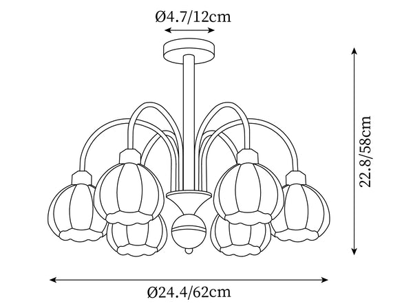 6 heads size: Dia 62cm x H 58cm / ∅ 24.4″ x H 22.8″