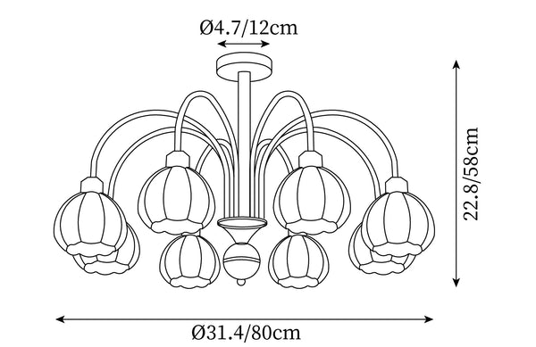 8 heads size: Dia 80cm x H 58cm / ∅ 31.4″ x H 22.8″