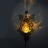 - Transform your outdoor space into a celestial marvel with the Mystical Moon Flame Solar Garden Light. This stunning piece features a hollow iron frame resembling a crescent moon or sun, encasing a cracked glass globe that casts enchanting patterns at dusk.