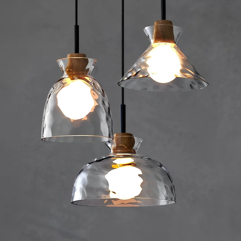 Round Creative Glass Wood Japanese Style Pendant Lights Small Chandelier