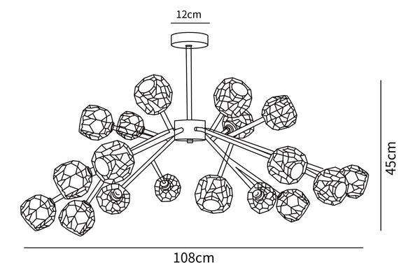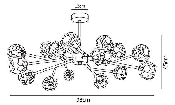 The precise dimensions and angles of each piece diffuse and reflect light around the room creating a welcoming ambiance. Position above a dining table for a luxe look that makes a statement. Or place center-stage in a living room to create a cool vintage vibe that has endless designer appeal.