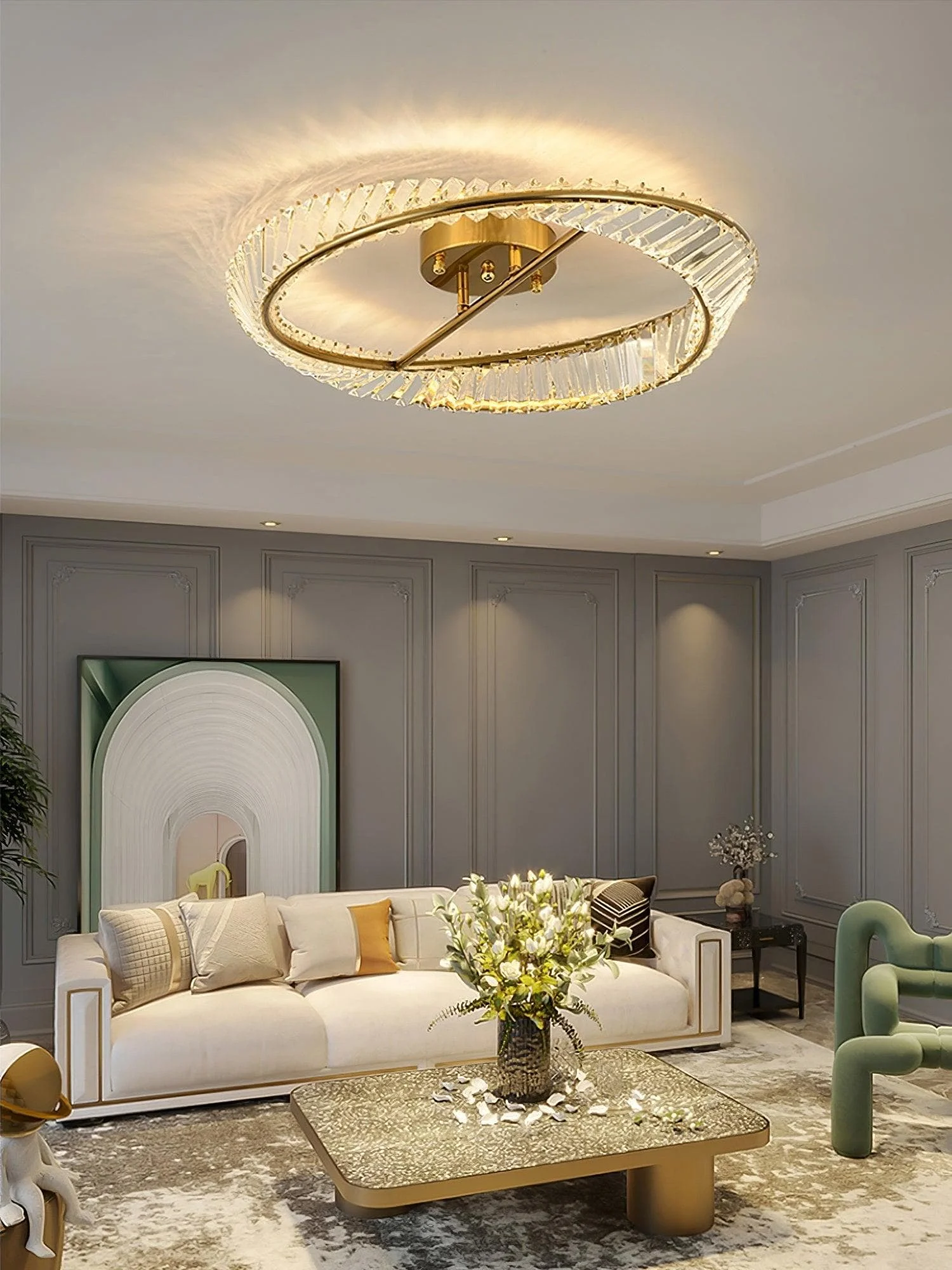 The Crystal Rings Ceiling Lamp is an absolutely ingenious designer ceiling light with a circular shape for your home. It is made of stainless steel and has clear glass. This ceiling lamp is very individual, special, and elegant, perfect for the modern apartment.