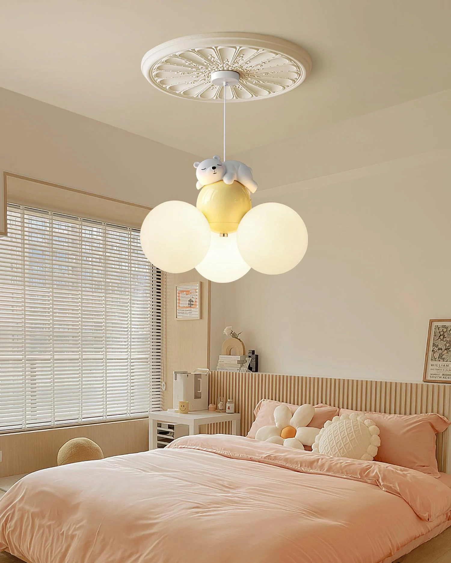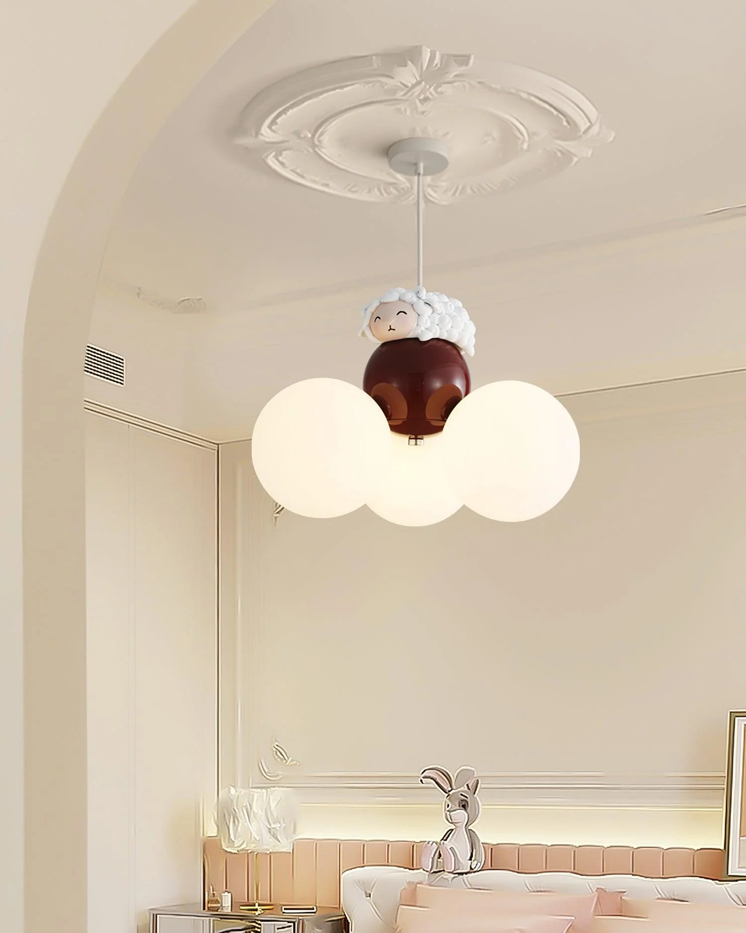 The charming Animal Pendant Lamp a whimsical addition to any interior space. This delightful fixture features a playful sheep character perched atop a trio of luminous globes, evoking the softness and comfort associated with its fluffy inspiration. The design blends playful imagination with elegant lighting, creating a piece that is both functional and a source of joy. It’s perfect for a child’s room or adding a touch of whimsy to a cozy reading nook.