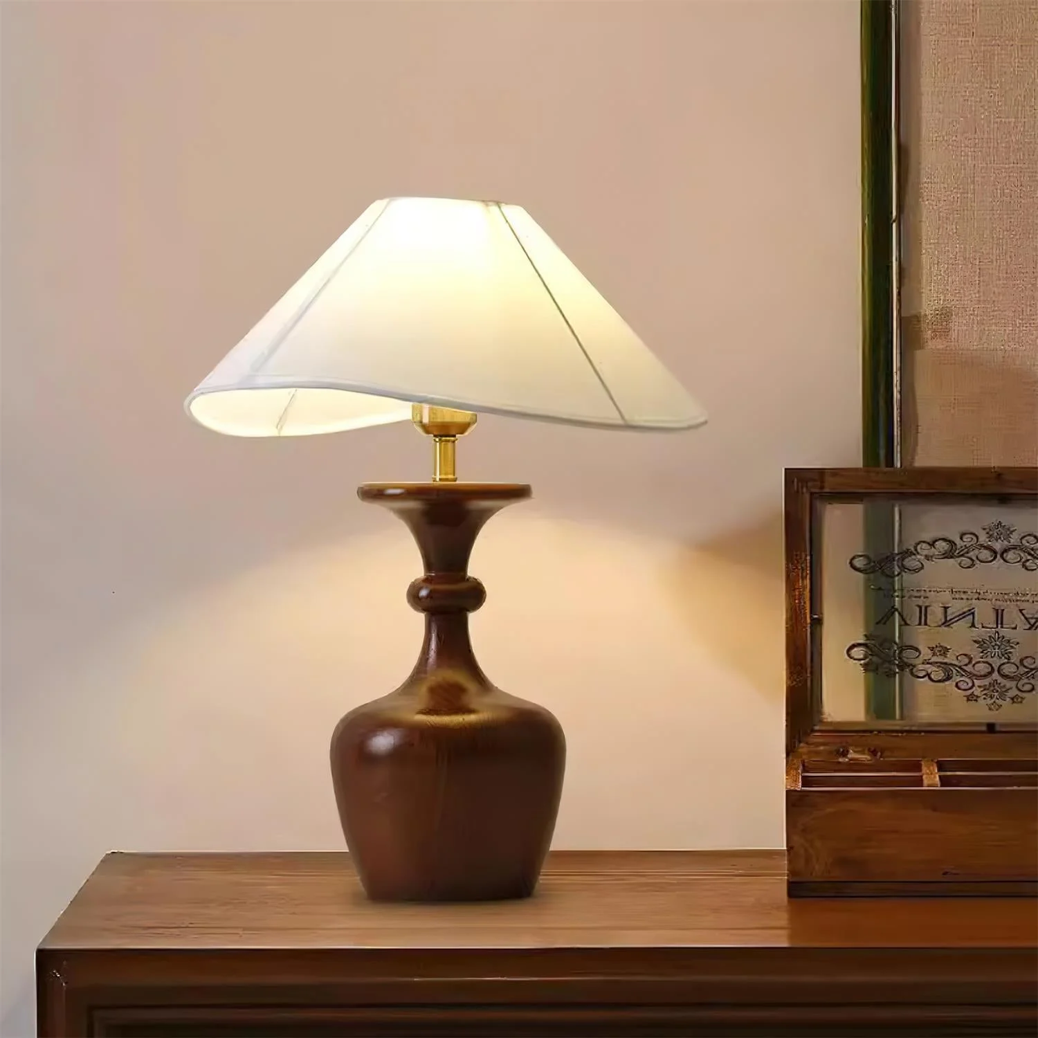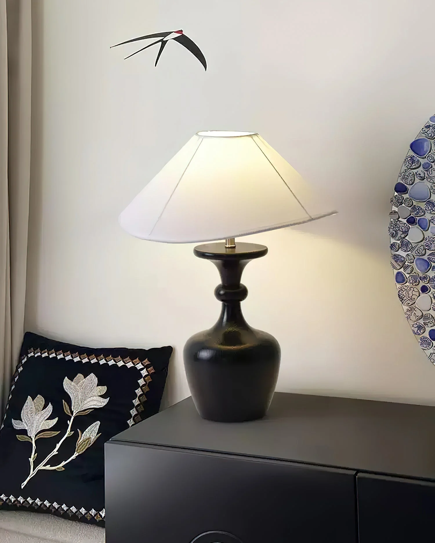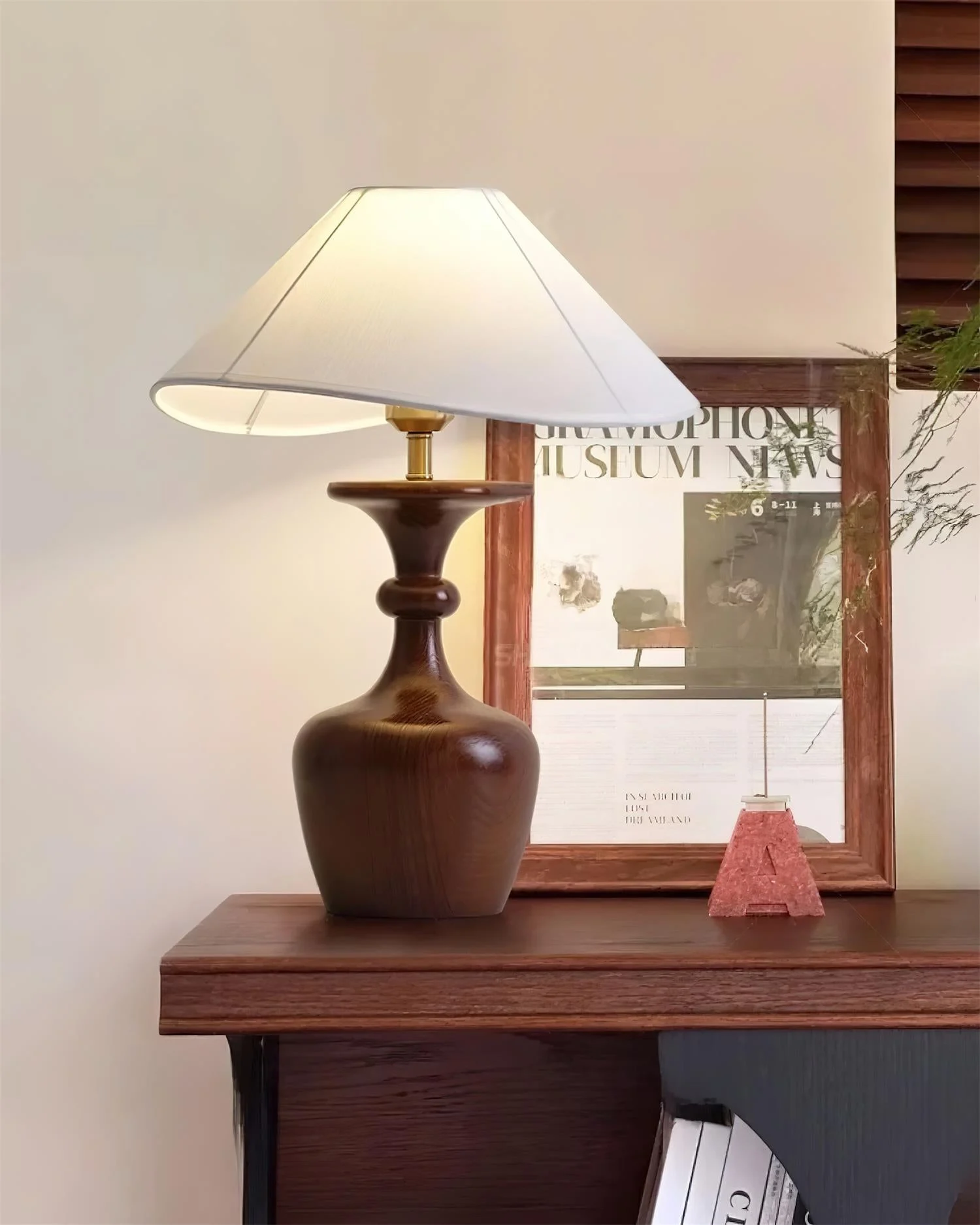 The Danny Wood Table Lamp exemplifies elegance with its classically sculpted base and soft, luminous glow. Meticulously crafted from fine wood, the lamp’s body boasts a graceful, curvaceous form, highlighted by a rich, deep finish that complements any decor, from the traditional to the modern. Topped with a conical fabric shade that diffuses light gently, this lamp is perfect for creating an inviting atmosphere in any room.