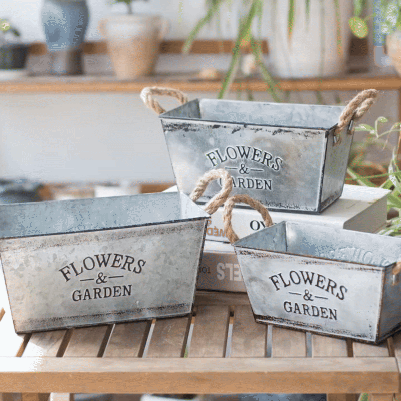 Charming Metal Garden Container With Hemp Rope Handles – A Touch Of Nature For Your Home