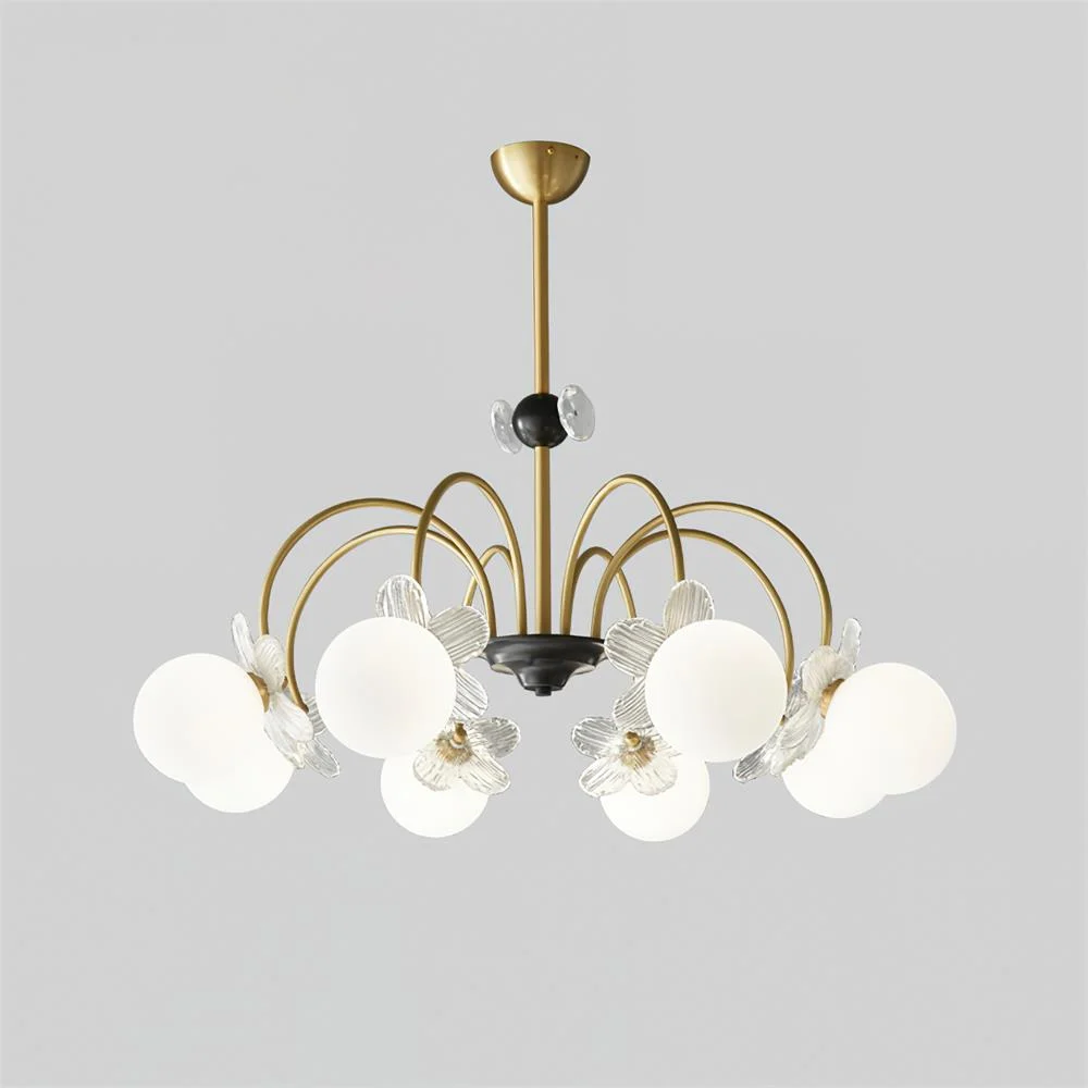 Encounter the perfect blend of luxury and elegance with the exceptional design of Docos. This chandelier, featuring a delicate brass structure and unique floral lampshade design, adds a touch of romance and sophistication to your space. Each lampshade blooms like a flower, emitting a soft glow that illuminates every corner.The meticulously curved metal lines, like an artist’s brushstrokes, create a captivating masterpiece.