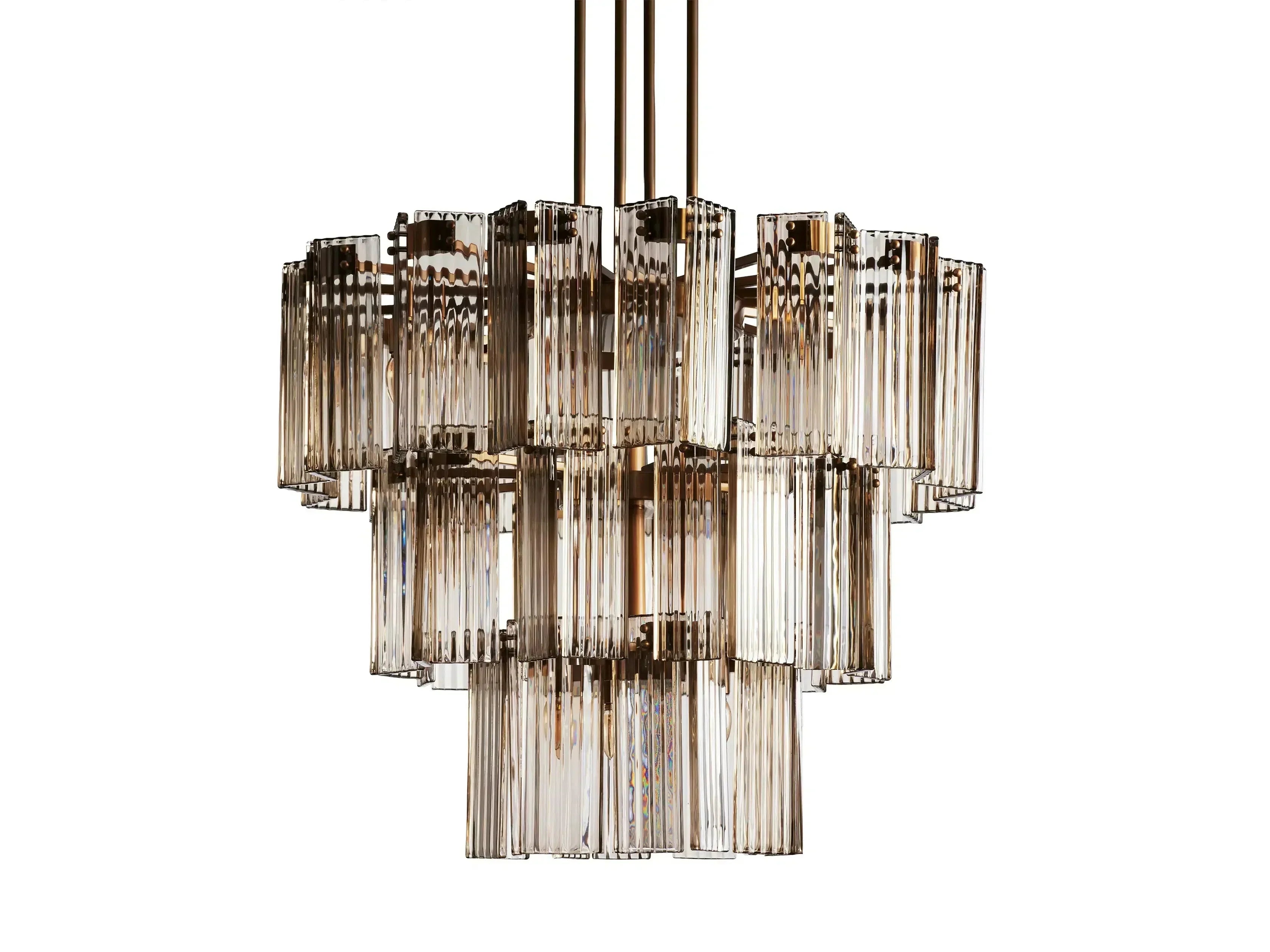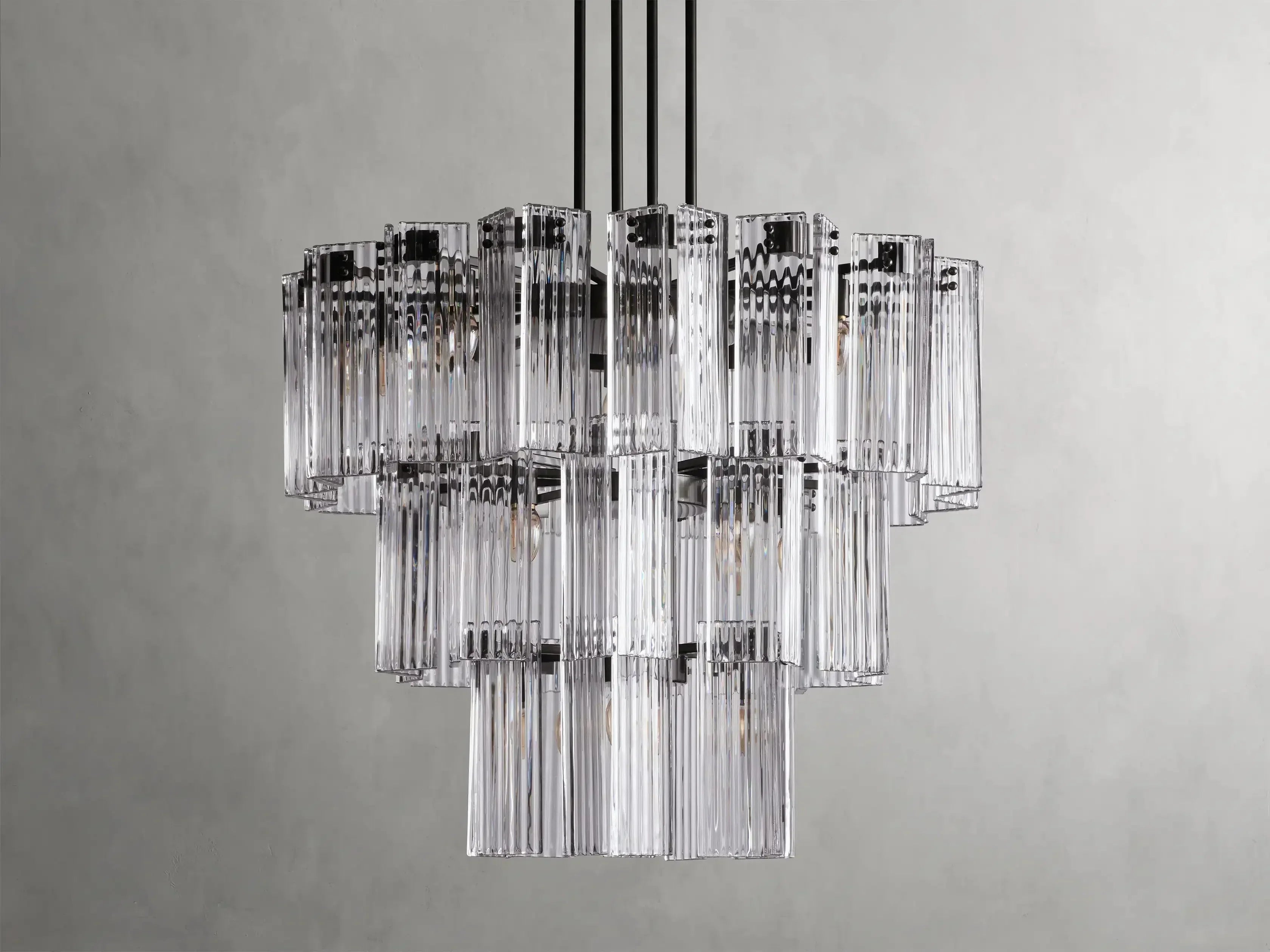 • A fresh take on a traditional silhouette, our Delsie Collection radiates old Hollywood glamour. Crafted from reeded glass panels elegantly arranged around a steel frame, Delsie creates dramatic ambiance in any space.