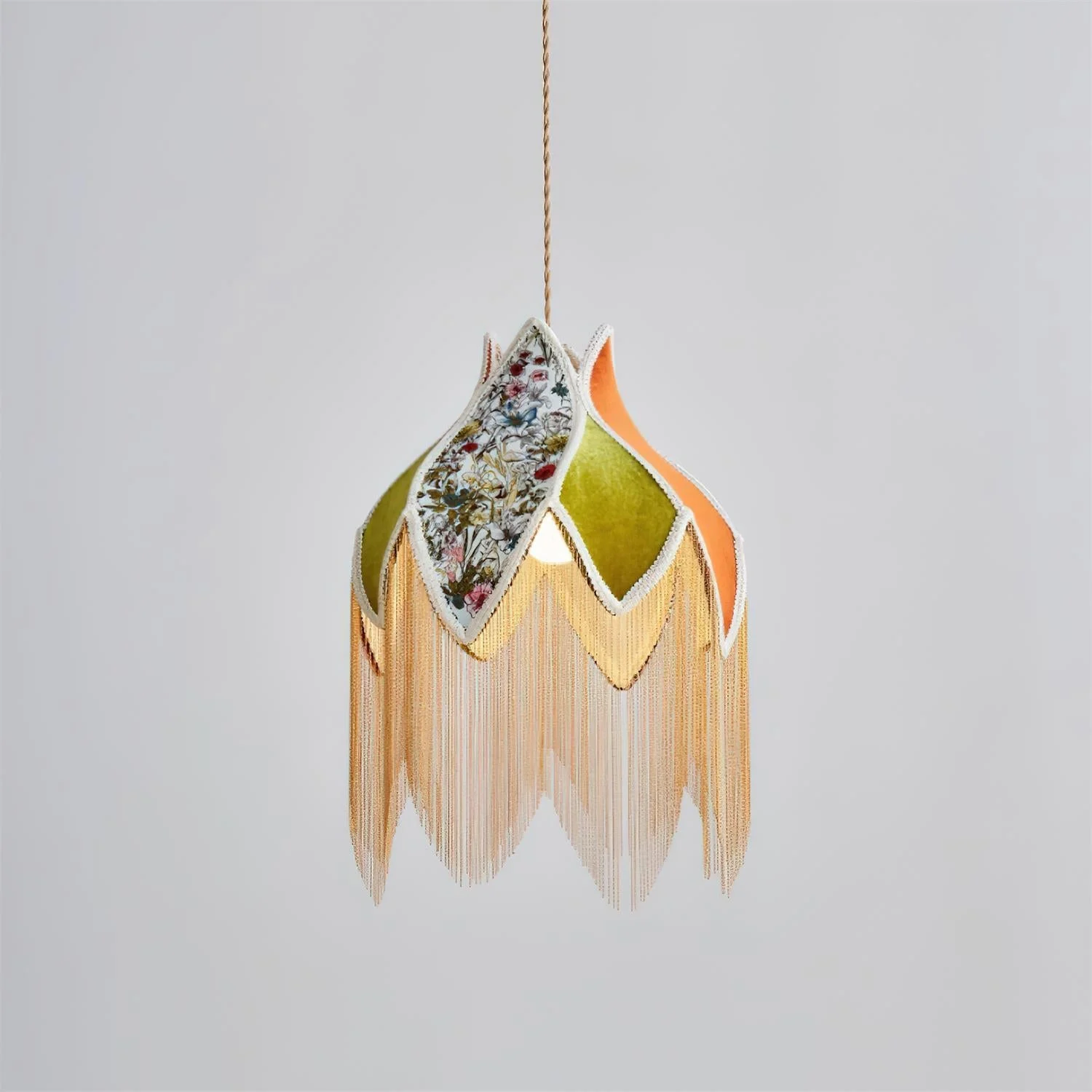 The Diana Fabric Pendant Lamp from Docos brings a touch of vintage elegance with a modern twist to your living space. Featuring a striking combination of floral fabric, lush Fabric lampshade and cascading fringe, this pendant lamp creates a truly unique and artistic statement. Its intricate craftsmanship and vibrant color palette add a bohemian charm, making it a standout piece in any room. Illuminate your home with this exquisite creation from Docos.