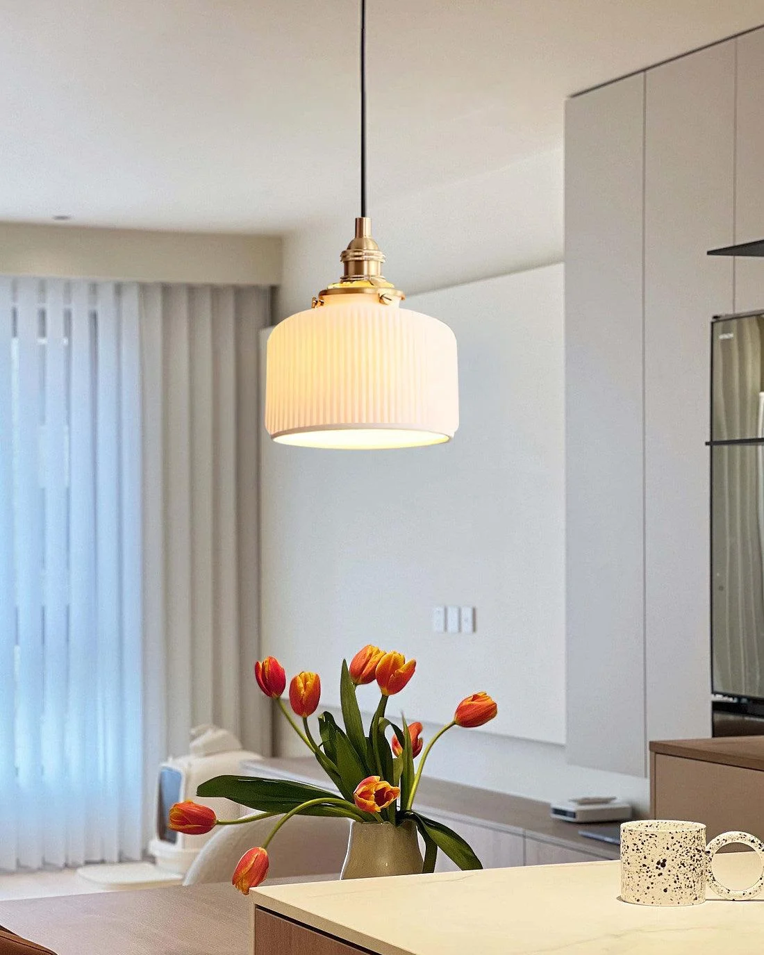 The Dilworth Pendant Lamp where classic charm meets contemporary chic. This stunning fixture features a pristine white, ribbed glass dome that is both timeless and on-trend, capped with an elegant brass finish that adds a touch of luxury. Designed to capture the essence of sophisticated living, the Dilworth Pendant Lamp casts a warm, diffused light that’s perfect for creating an inviting atmosphere in any room.