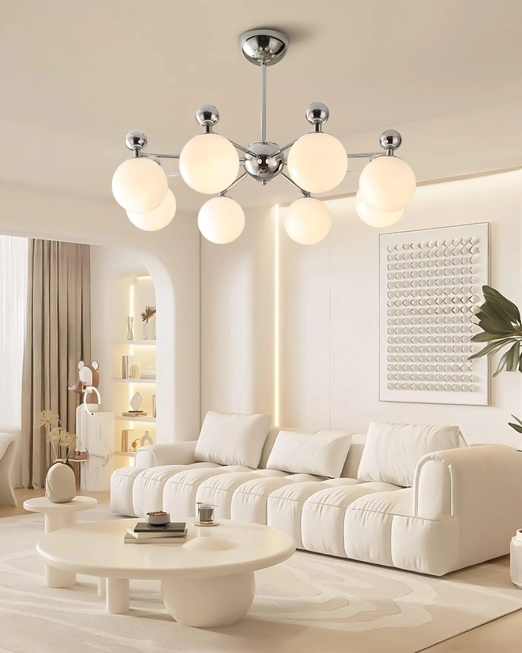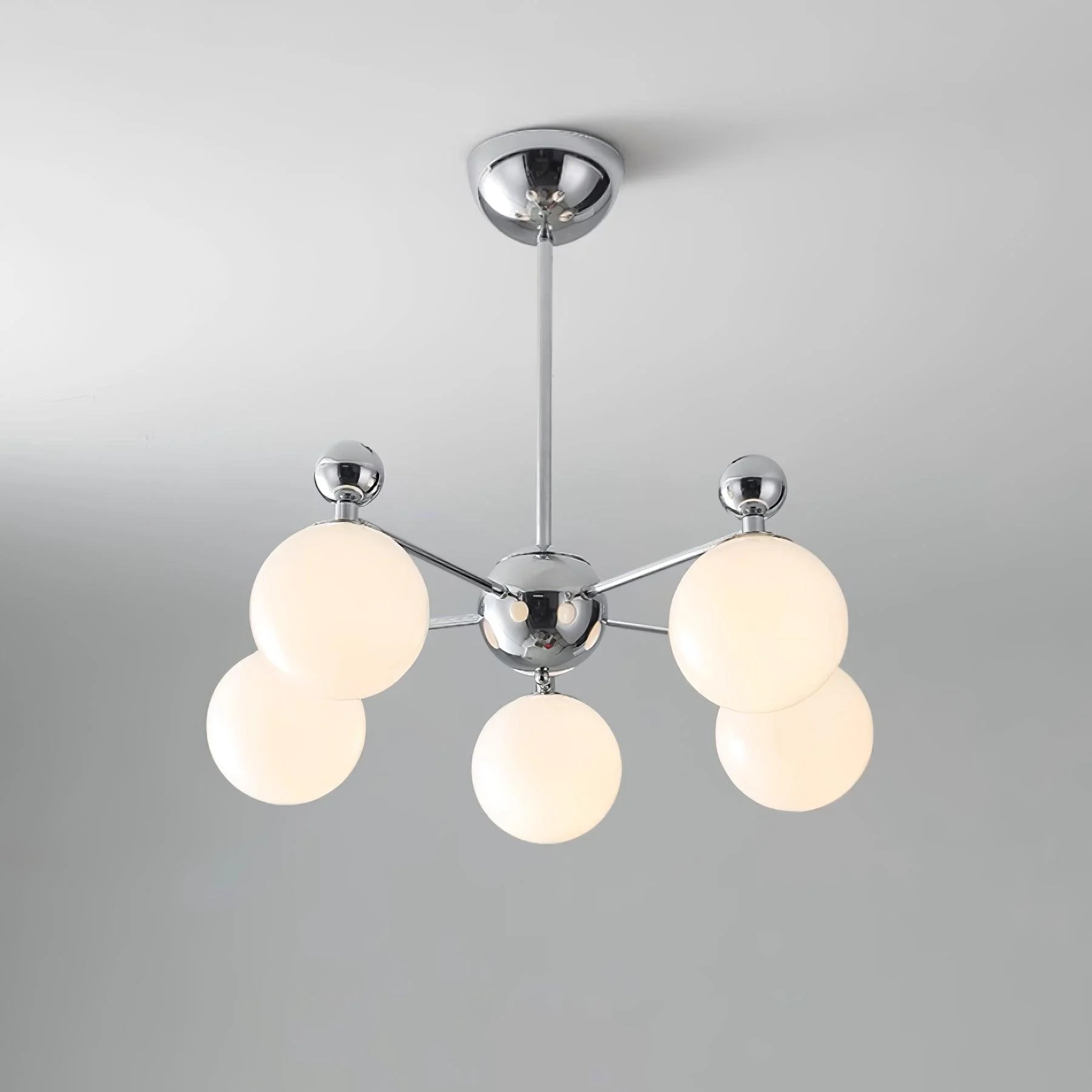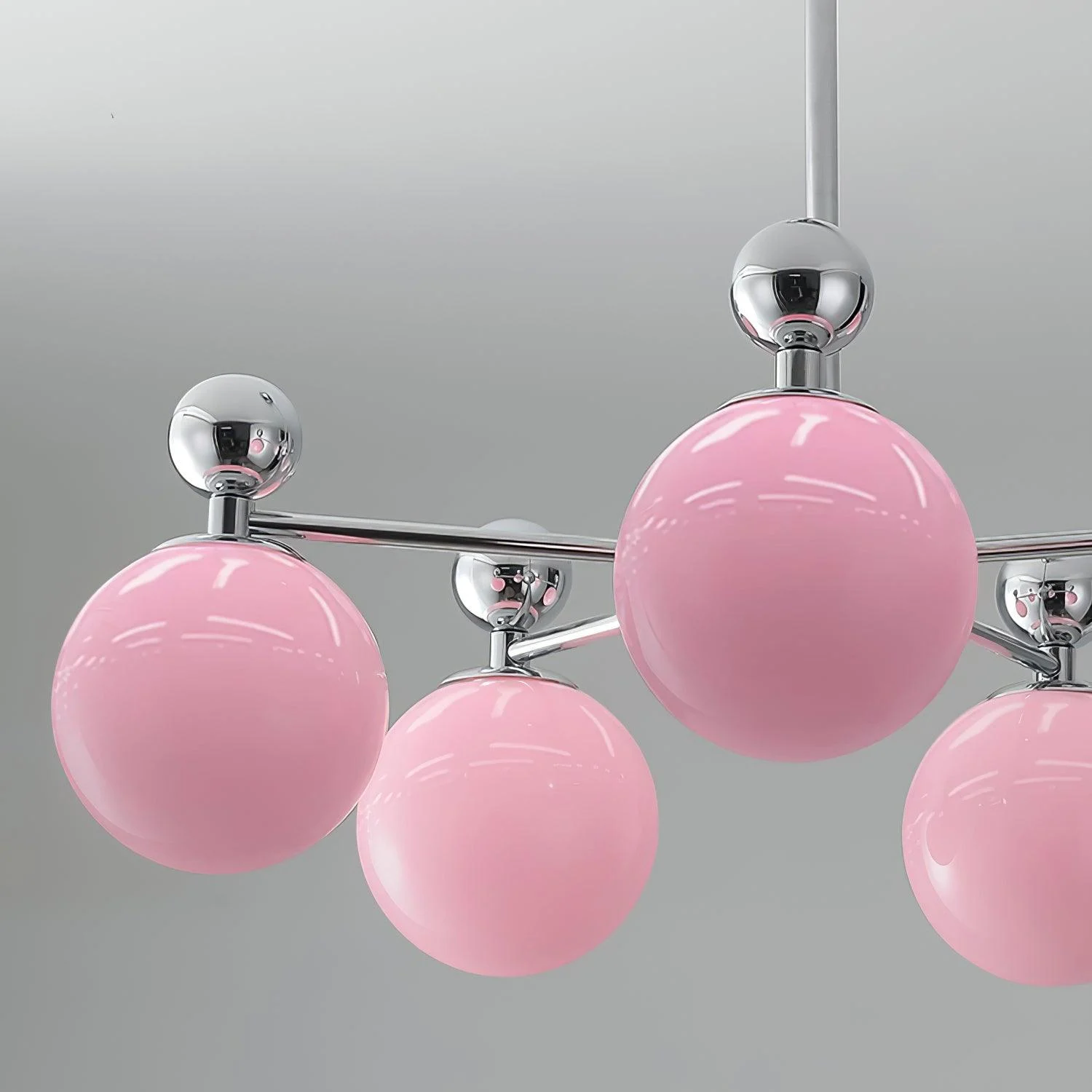 Embodying the charm of modern style fused with elegant design, this Mediterranean-inspired chandelier with its distinctive pink glass globes and sleek chrome accents adds a soft, stylish ambiance to any space. Each glass globe is meticulously blown to ensure a unique beauty and quality. Inspired by classic Mediterranean elements, it blends clean lines and color coordination of contemporary home decor.