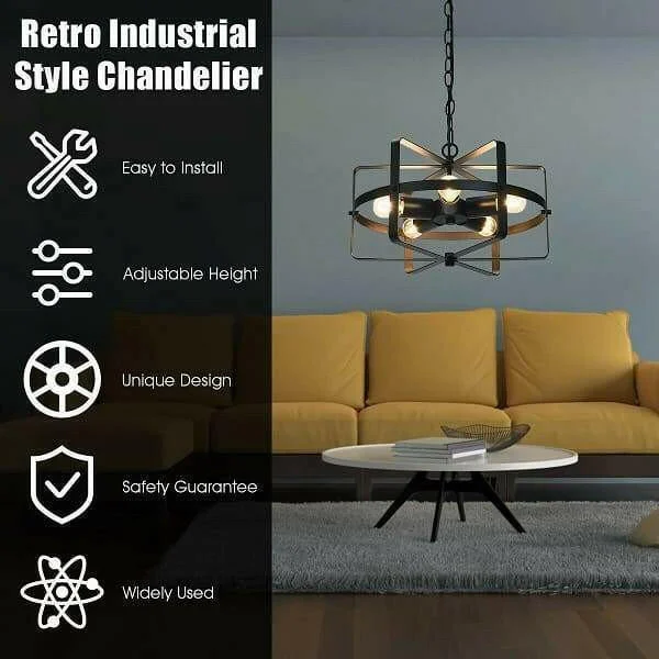 - Industrial Style & Perfect Decoration: This chandelier with retro industrial design provides a soft and rich indoor lighting. It is also the perfect decoration of the residence, which can be widely used in residential or commercial lighting, such as dinning room, kitchen, living room, bedroom, hallway, cafe, restaurant, etc.