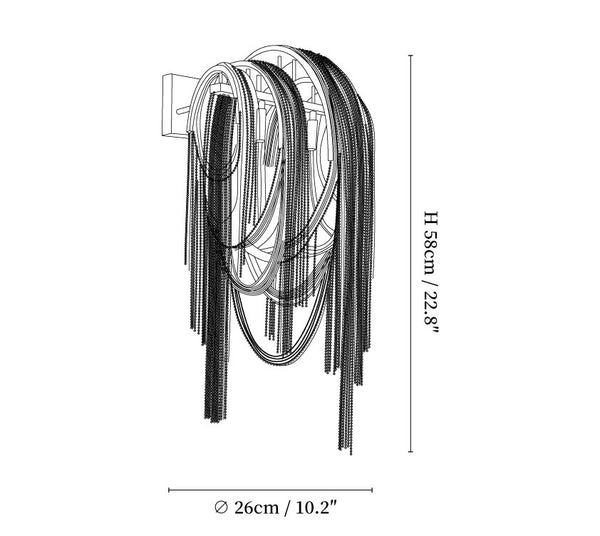 Introducing the Elara Tassel Wall Lamp, a captivating wall sconce that exudes elegance and sophistication. Adorned with delicate tassel chains, its cascading design and ambient glow will add a touch of luxury to any wall. Elevate your space with this refined piece of art.
