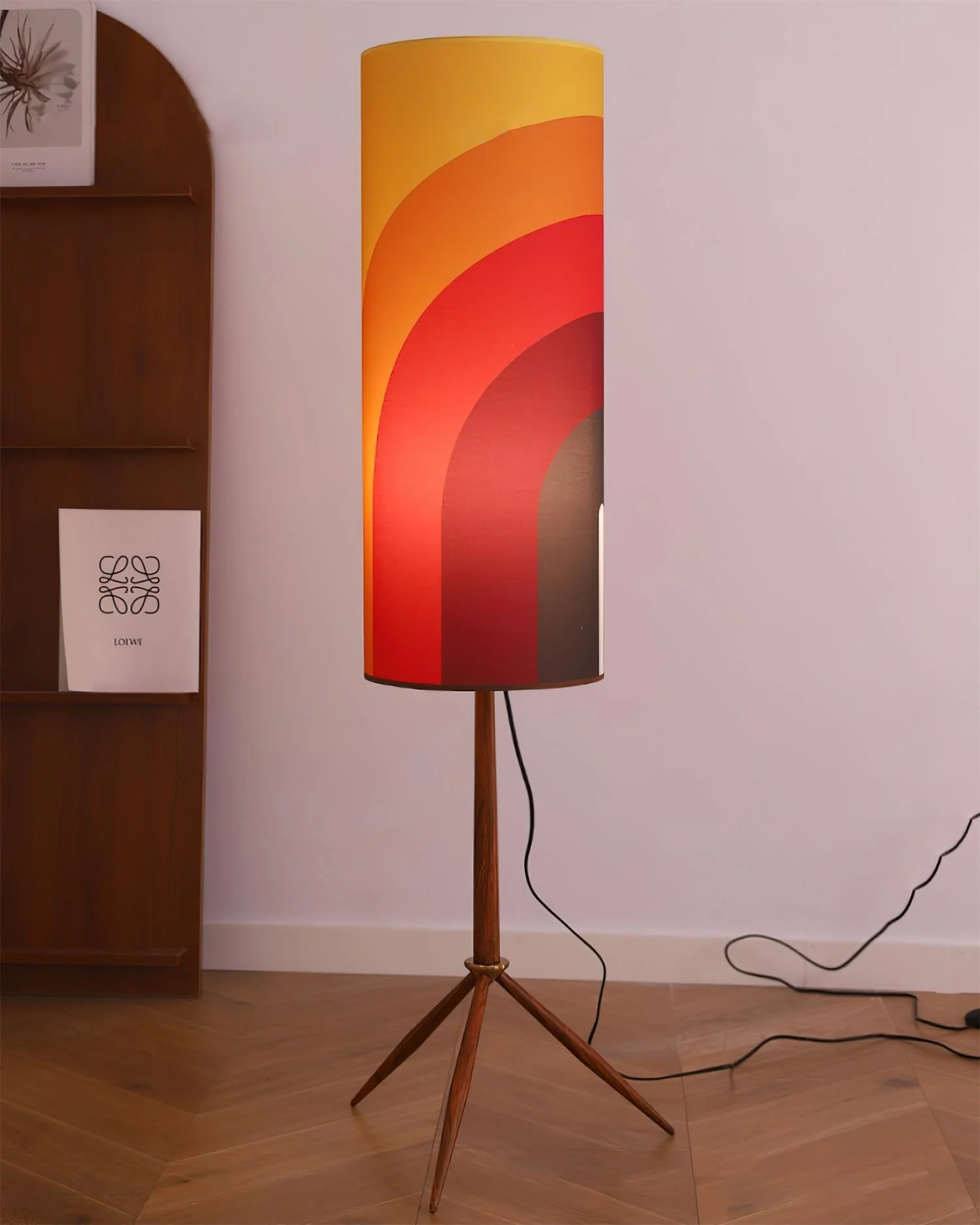 The Electra Floor Lamp from Docos is a bold statement piece that brings vibrant energy to any room. Featuring a cylindrical shade with a striking gradient of warm hues, this lamp adds a retro-inspired charm to your décor. Its sturdy tripod wooden base offers both stability and elegance, seamlessly blending modern and vintage aesthetics. Crafted with attention to detail, this lamp is both functional and visually captivating.
