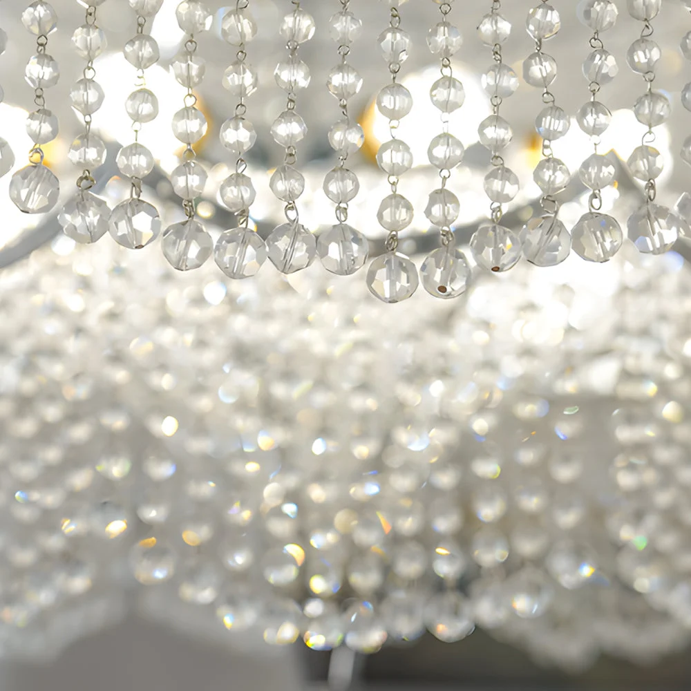 - These crystal chandeliers are available in two sizes, 16 inches and 32 inches in diameter, each with two layers of crystal tassels and intricate embellishments that mesmerize with their unparalleled beauty day or night. Its electroplated chrome metal body ensures durability while enhancing its luxurious appearance.