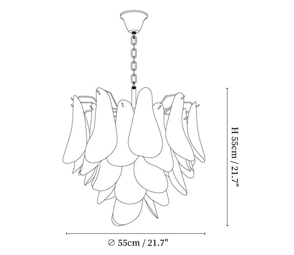 Transform your space into a sophisticated oasis with the Emerald Flame Murano Glass Chandelier. Its floral-inspired design, crafted from layers of glass petals, emits a warm golden glow that adds an elegant touch to any room. Elevate your dining room or entryway with this timeless and graceful chandelier.、