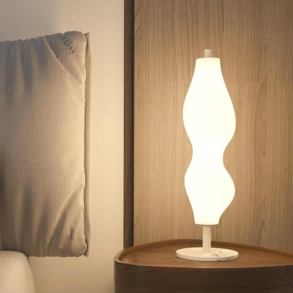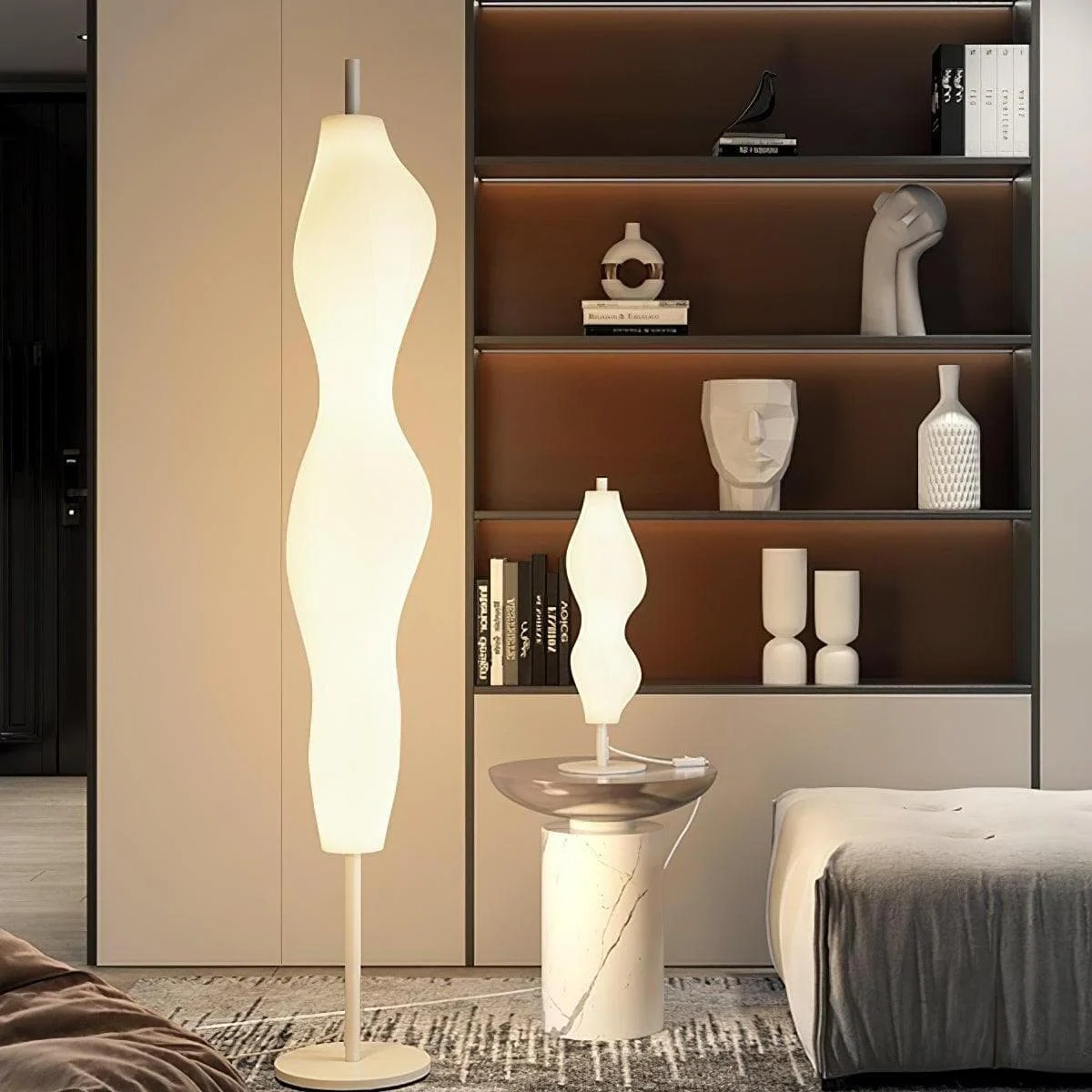 The designer creates a translucent biomorphic form to create stunning light. It is a Empirico Table Lamp that features a diffuser in rotationally molded which gets fitted in a stem. The stem stands on a base that is made of metal. It is finished in opal gloss and is a non-dimmable Luminaire. The light would seize every attention for its soft curves. It illuminates the room with diffused, fluorescent lighting and is an energy-saving choice.