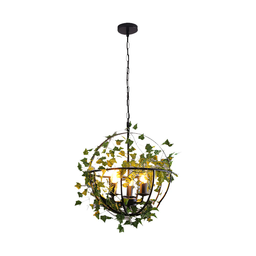 Enchanted Forest-inspired Iron Cage Pendant Light with Vines