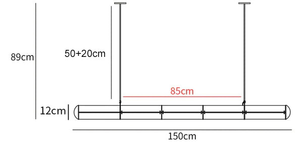 Equipped with two suspension rod by default. Suspension rods length 20+50/(7.9″ + 19.7″). The length of the suspension rod can be varied upon request. (Contact us)