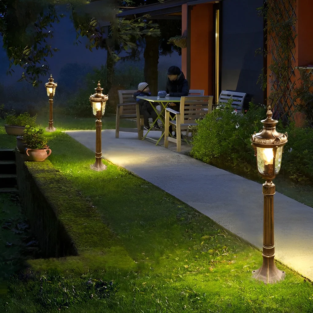 - Introducing our European-Style Outdoor Lawn Lamp, designed to bring a touch of elegance and durability to your outdoor spaces. This lamp features a robust die-cast aluminum body and a high-quality glass lampshade, ensuring it remains as pristine as the day you bought it, regardless of weather conditions.