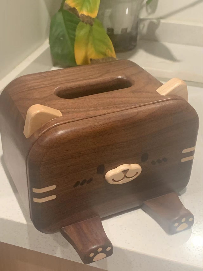Add a playful touch to your home decor with our Exquisite solid wood cat face tissue box. The cat’s legs act as a fun mobile phone holder, while the sturdy wood construction is perfect for your tissues. A quirky and creative addition to any room. Meow!