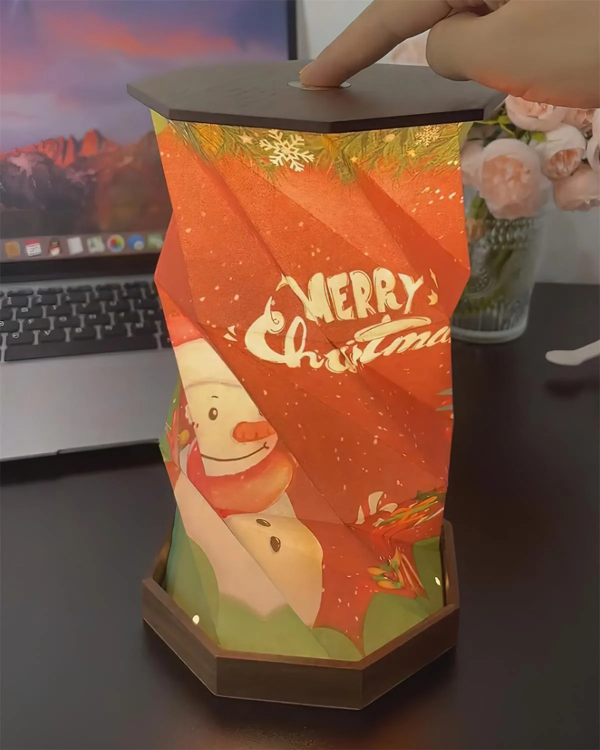 This innovative lighting design, named “Fida Fold Table Lamp,” combines practicality with festive cheer. The lamp’s distinct feature is its foldable design, allowing users to easily adjust its shape and size as needed. During the day, its folded form acts as a beautiful decorative piece, while at night, it can be unfolded to reveal Christmas-themed patterns such as snowmen and holiday decorations, creating a cozy festive atmosphere.