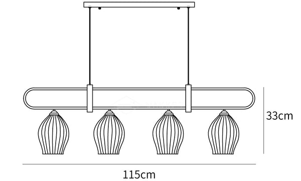4 heads Size: L 115cm x H 33cm / ∅ 45.3″ x H 13″