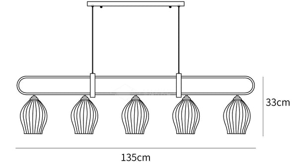 5 heads Size: L 135cm x H 33cm / ∅ 53.1″ x H 13″