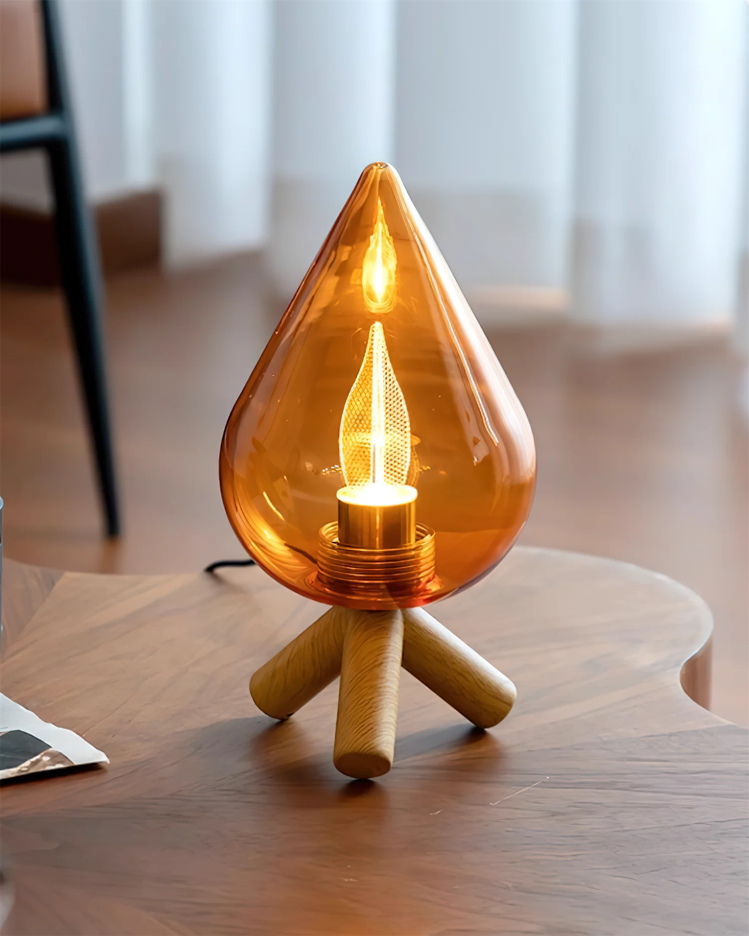 The Flame Table Lamp captures the poetic essence of firelight within a sculptural, contemporary form. Its striking teardrop-shaped amber glass shade cradles a flickering flame-like bulb, casting a mesmerizing, warm glow that mimics the quiet beauty of a candle in the wind. Whether placed on a bedside table, shelf, or reading nook, the Flame Lamp becomes an instant focal point—both art piece and ambient light source.