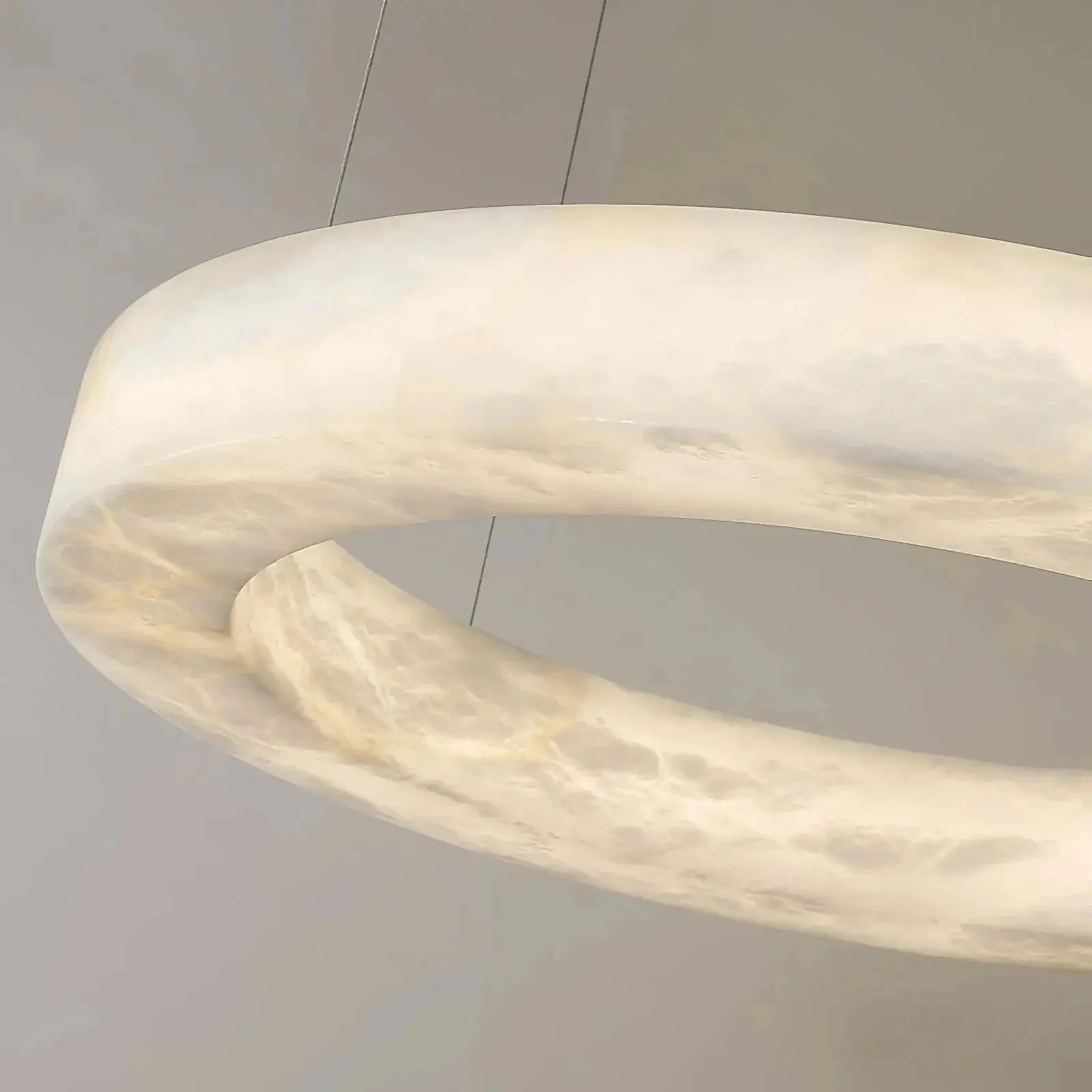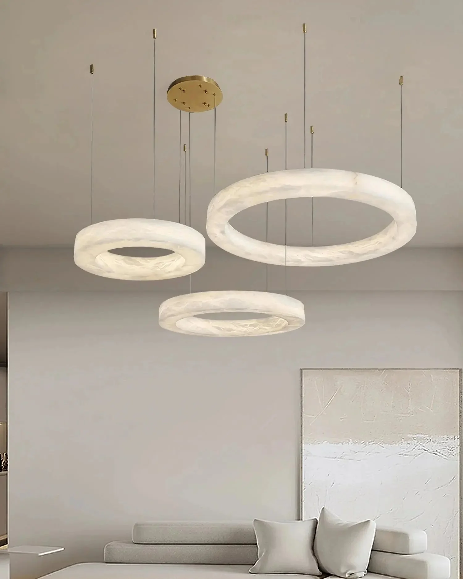 The Alabaster Round Chandelier, a contemporary circular masterpiece, is a stunning embodiment of modern design. Crafted entirely from genuine alabaster, thoughtfully arranged in a harmonious blend of varying sizes, this chandelier stands as an exceptional choice for enhancing entrance foyers, living rooms, and a wide array of diverse projects.
