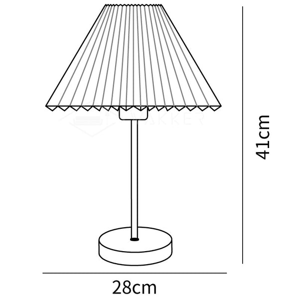 A beautifully pleated shade takes center stage in our dramatic Flores table lamp. Made of upholstered fabric, the conical shade angles an exaggerated taper for maximum light filtering. The base counterbalances with the warm color and grain of natural wood, while the slim light pole and conical finial finished in burnished metal add clean lines and complete the mixed-material look.
